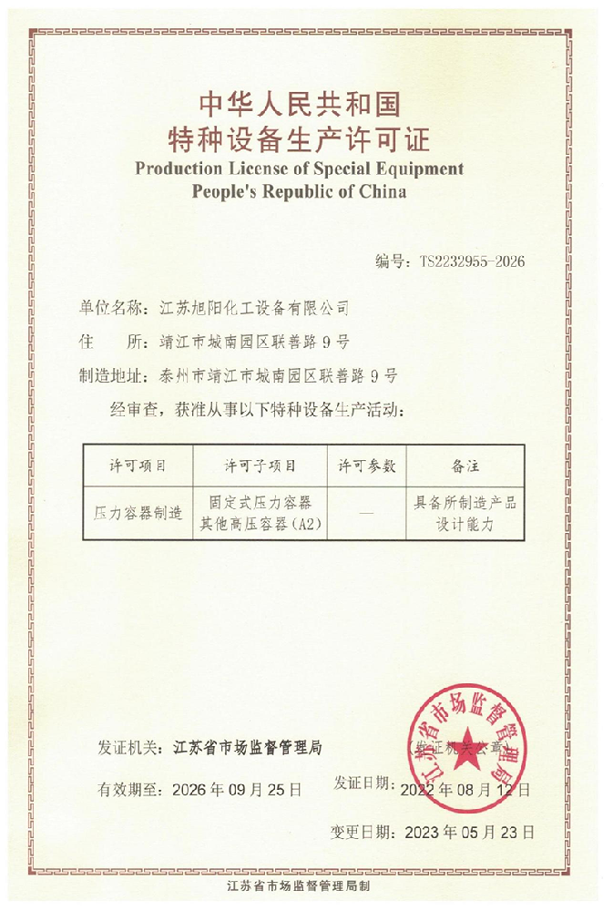 江蘇旭陽化工設(shè)備有限公司專業(yè)從事各類化工、環(huán)保、制藥、發(fā)酵、食品、新材料、鋰業(yè)等項(xiàng)目設(shè)計、制造及壓力容器的生產(chǎn)制造,是一家集研發(fā)、生產(chǎn)和進(jìn)出口貿(mào)易于一體的高科技企業(yè)。